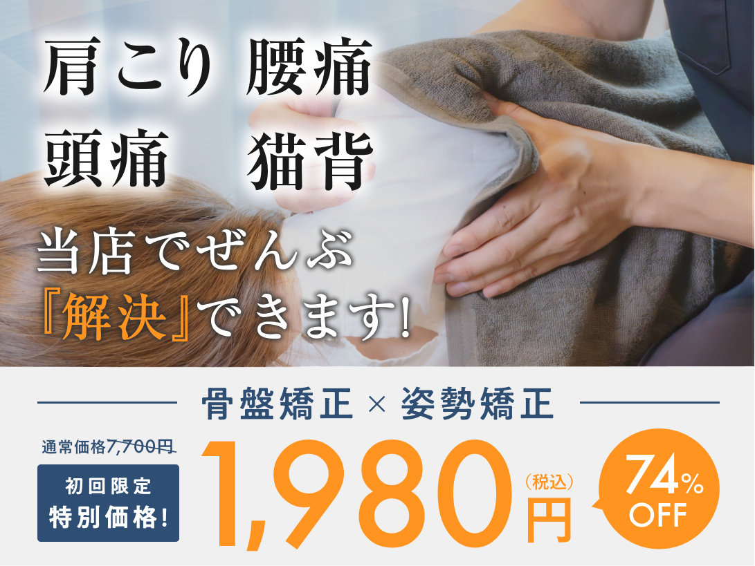 当日予約◎【姿勢&骨盤矯正〇初回1980円】国家資格者による整体院/肩こり/腰痛/肩甲骨のお悩み根本改善!
